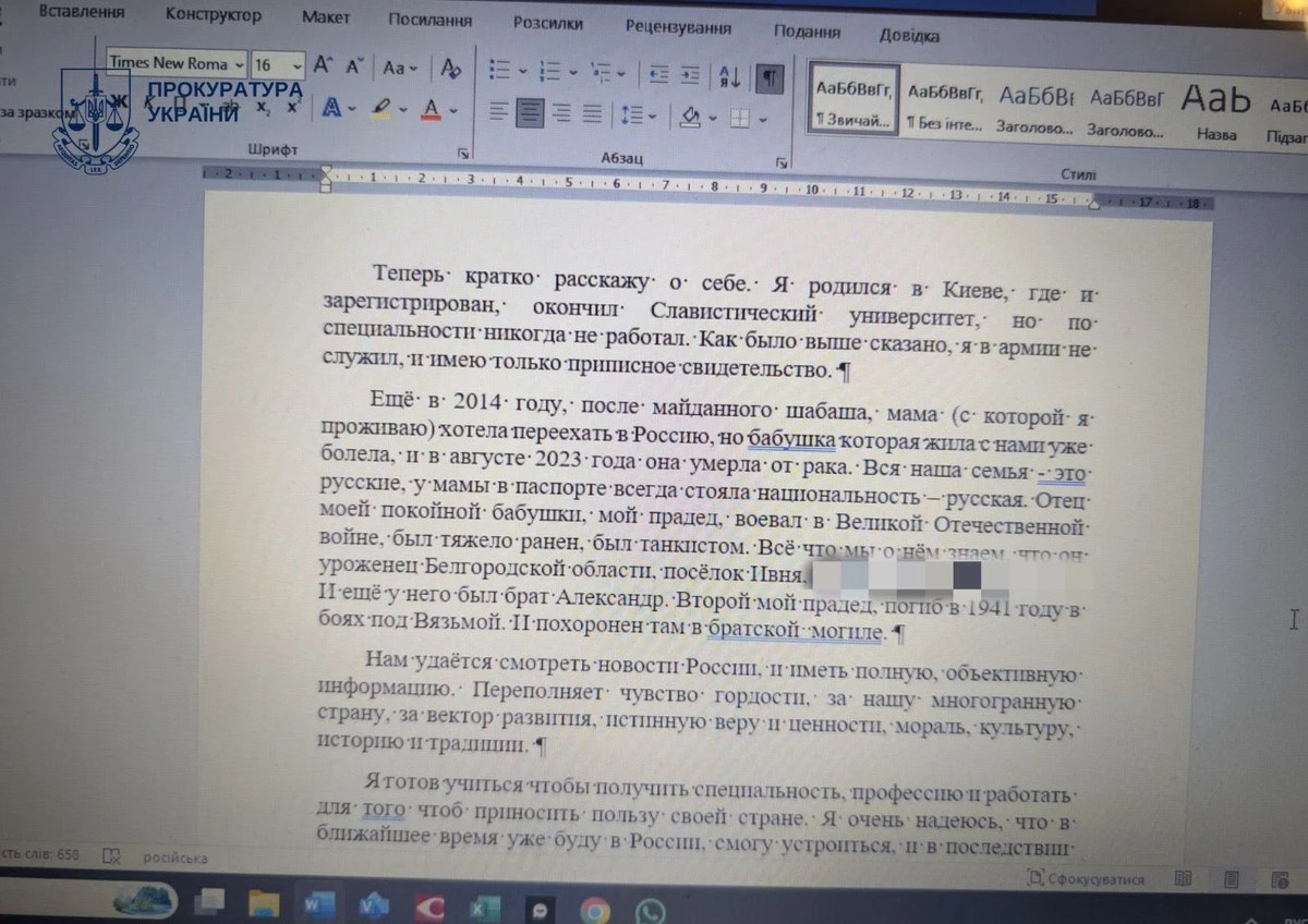 За даними правоохоронців, очільниця одного з відділів міністерства схвально цитувала публічні виступи очільника Кремля Володимира Путіна, виправдовувала російські обстріли критичної інфраструктури України, зокрема об’єктів енергетики Києва, поширювала дезінформацію про оперативну ситуацію на фронті та фейки про Сили оборони.
